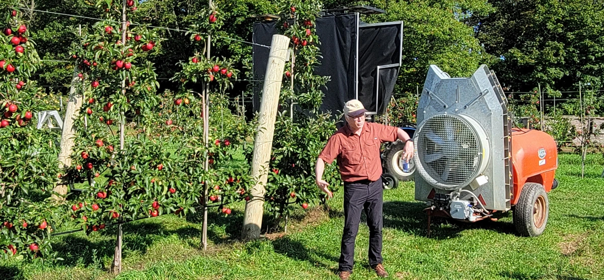 Production fruitière intégrée sous filets: pulvérisations à faible dérive et à faible impact pour l’éclaircissage et les interventions phytosanitaires dans les vergers en régie biologique ou sans pesticides